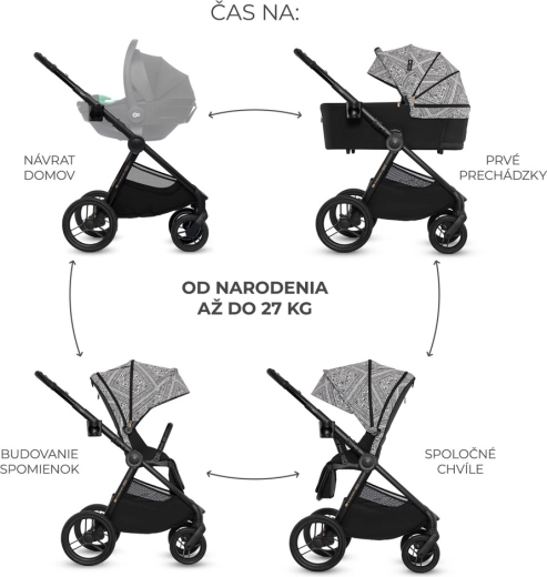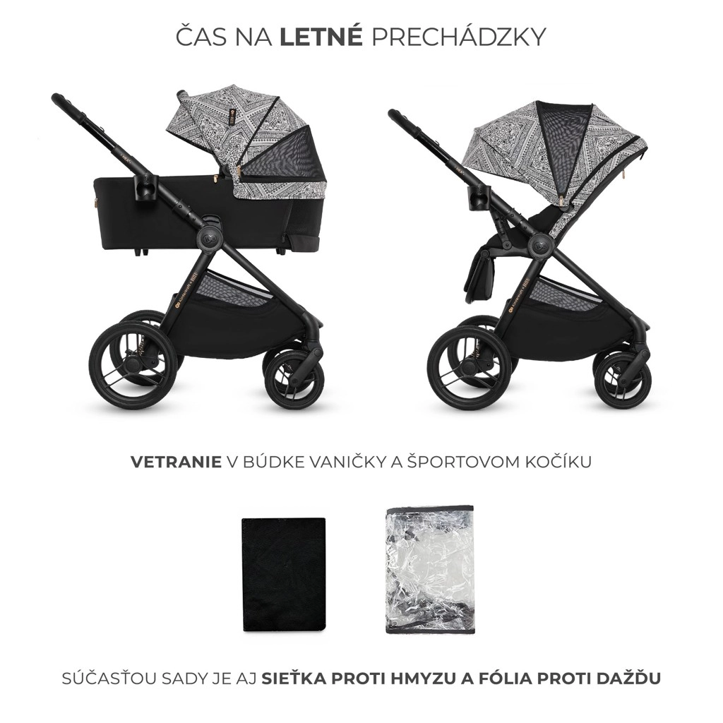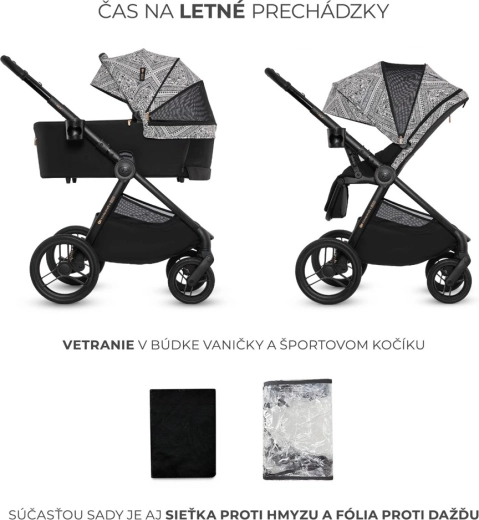 - Adaptéry pro autosedačku, nánožník pro korbu a sportovní část, matrace do korby, držák na nápoj, pláštěnka, síťka proti hmyzu, přebalovací taška