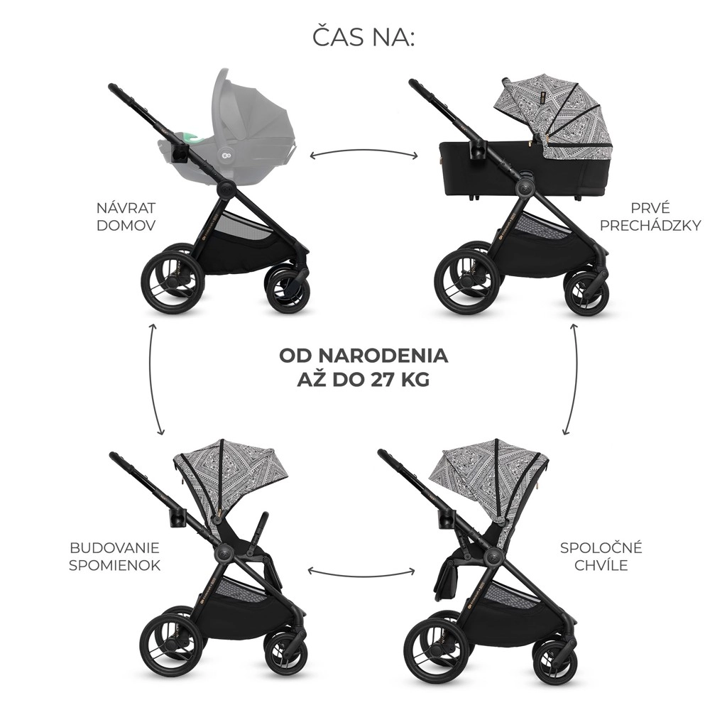 Rodiče ocení lehkou a stabilní konstrukci, teleskopickou rukojeť pro pohodlné řízení jednou rukou, ventilační panel a okénko pro kontakt s dítětem, novou magnetickou přezku i snadnou údržbu díky snímatelným potahům. V balení najdete vše potřebné pro každodenní výlety – od adaptérů pro autosedačku po pláštěnku a síťku proti hmyzu.