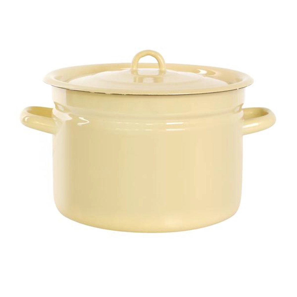 Tradiční smaltovaný kastrol s objemem 9 l je ideální pro každodenní vaření. Nabízí rovnoměrný rozvod tepla, je vhodný na všechny typy sporáků včetně indukce a díky dvěma pevným uchům umožňuje bezpečnou manipulaci. Elegantní béžové provedení s dekorem zeleniny ozdobí každou kuchyni i chalupu.