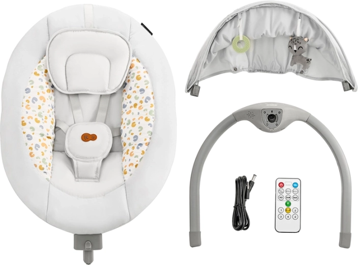 - Snadné ovládání: 5 rychlostí kolébání, 12 melodií, regulace hlasitosti, časovač a dálkový ovladač.