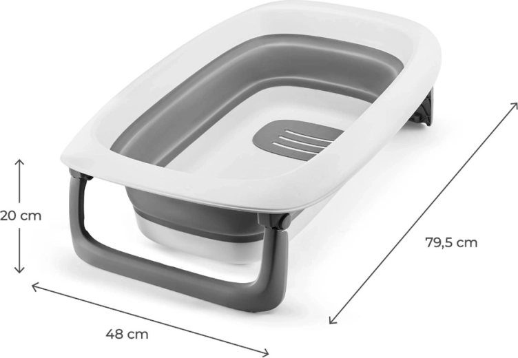 Vanička se silikonovým dnem se složí naplocho během chvilky – perfektní pro malé koupelny i cestování. Dlouhá odtoková hadice (151 cm) umožní vodu jednoduše vypustit přímo do umyvadla či vany bez přenášení těžké vaničky. Přehledná organizace je samozřejmostí: praktický košík udrží kosmetiku, ručníky i hračky na dosah.