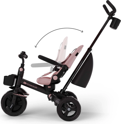 Rodiče ocení nastavitelnou rukojeť ve 3 výškách, funkci volného kola pro bezpečné první šlapání i rychlé a intuitivní skládání pro snadné uložení do kufru či skříně. O bezpečí se starají pětibodové pásy a bezpečnostní madlo, zatímco praktické doplňky – taška, zvonek, držák na pohár a dva košíky – zajistí místo pro hračky a nezbytnosti.