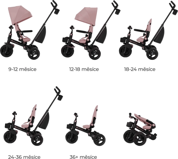 • 6 variant použití – tříkolka roste s dítětem od 9 měsíců do 5 let.