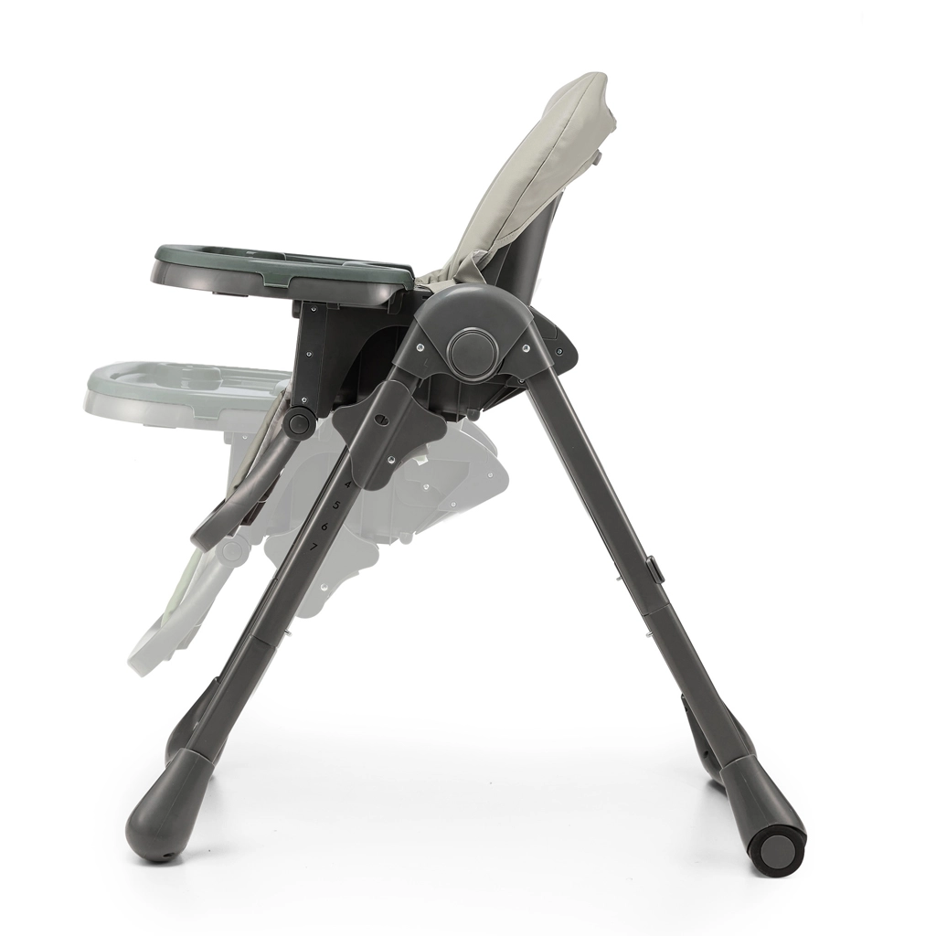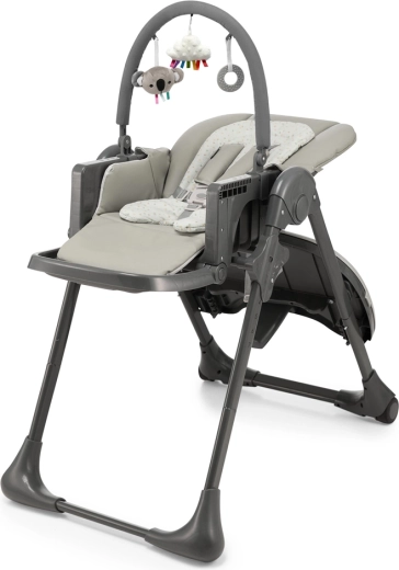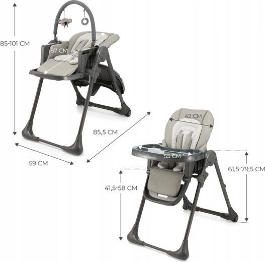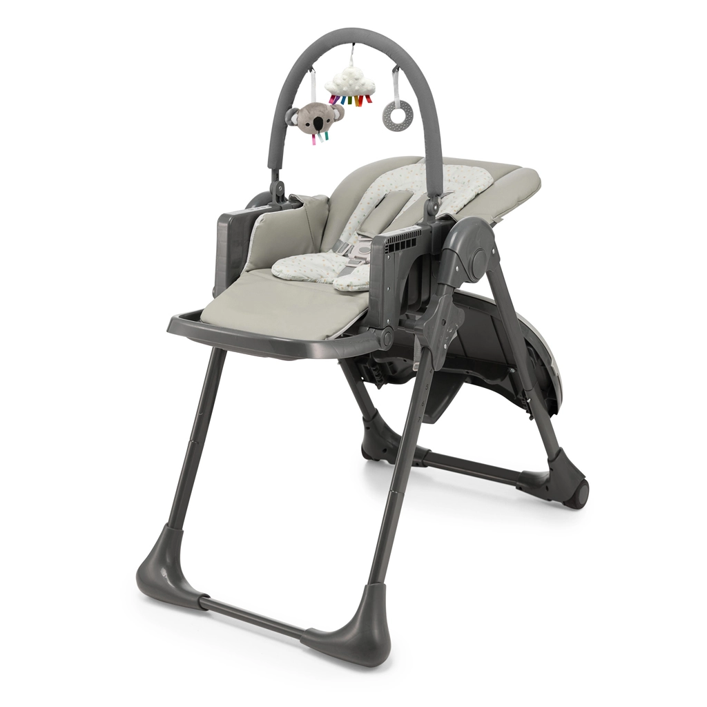 Židličku přizpůsobíte každému stolu díky 7 stupňům výšky, zádová opěrka má 4 polohy včetně relaxační, opěrka nohou 3 polohy. Po jídle ji během chvilky složíte téměř naplocho, tác zavěsíte na zadní nohy a díky kolečkům snadno přesunete. Nadčasový šedý design se hodí do moderních interiérů a materiály se snadno čistí vlhkým hadříkem.