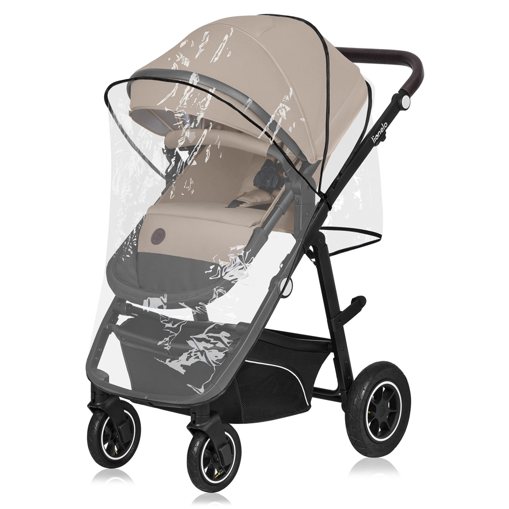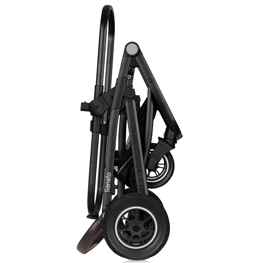 Součástí je autosedačka LIONELO Astrid s adaptéry pro snadný přesun z auta na kočárek. V balení také pláštěnka, moskytiéra, nánožník a přebalovací taška.