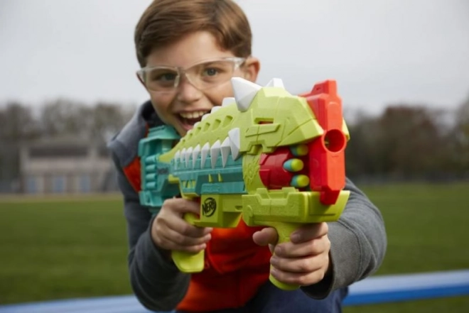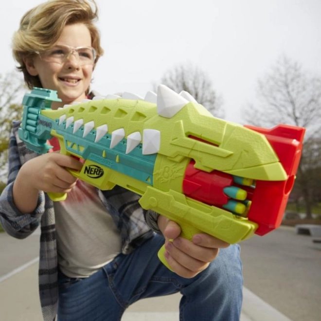 Vstupte do akce s dětským blasterem NERF DINOSQUAD ARMORSTRIKE, inspirovaným ankylosaurem. Nabízí otočný bubínek na 8 šipek, v balení najdete 16 šipek NERF Elite pro hraní bez přestávek a držáky šipek na těle blasteru pro rychlé přebití. Skvělý pro venkovní zábavu, bezpečnou akci a dobrodružství s dinosaury pro děti od 8 let.
