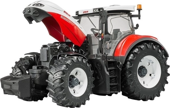 Realistický traktor STEYR 6300 Terrus CVT od BRUDER v měřítku 1:16 nadchne malé i velké milovníky techniky. Nabízí otevírací kapotu a dveře, odpruženou přední nápravu, odnímatelná kola a výškově nastavitelný závěs. Prosklená kabina z čirého nerozbitného plastu a kompatibilita s figurkami bworld zaručují skvělou hru doma i venku. Vyrobeno v Německu z kvalitního ABS plastu.