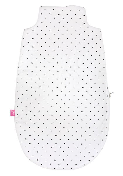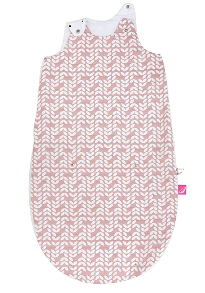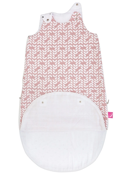 Promyšlené detaily jako patentky na ramenou pro zmenšení otvoru u krku a spodní prodlužovací díl na cvočky umožňují využití ve dvou velikostech: 3–6 měsíců při zapnuté spodní části a 6–18 měsíců při otevřené. Pytel je ušitý ze tří vrstev 100% bavlněného mušelínu bez výplně – jemný, nadýchaný a šetrný k citlivé pokožce.