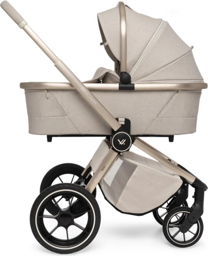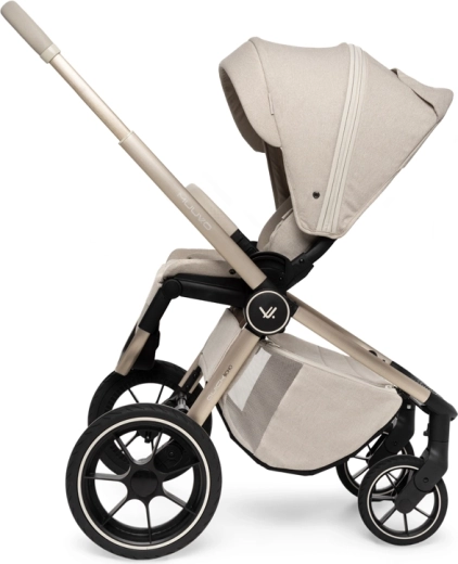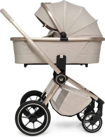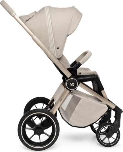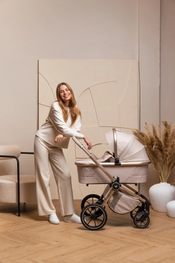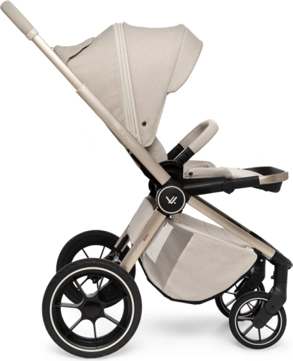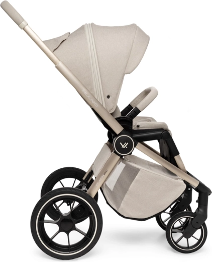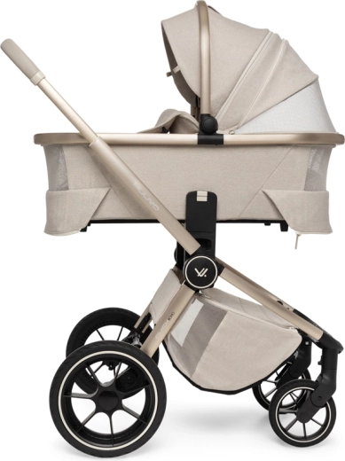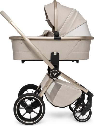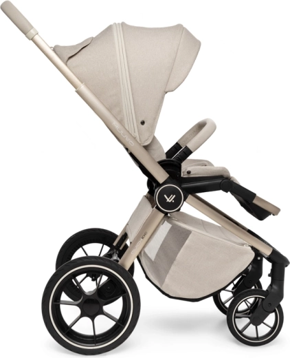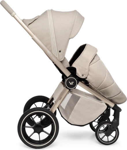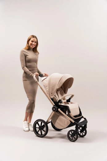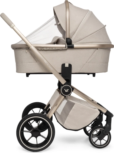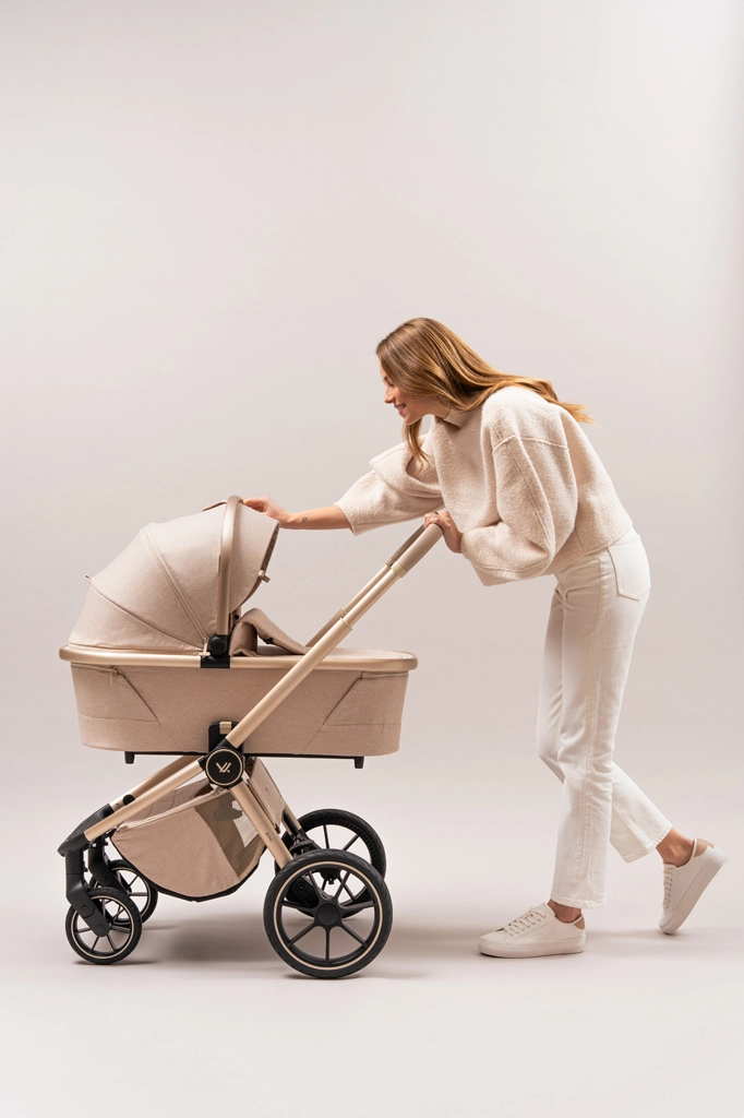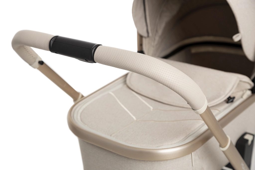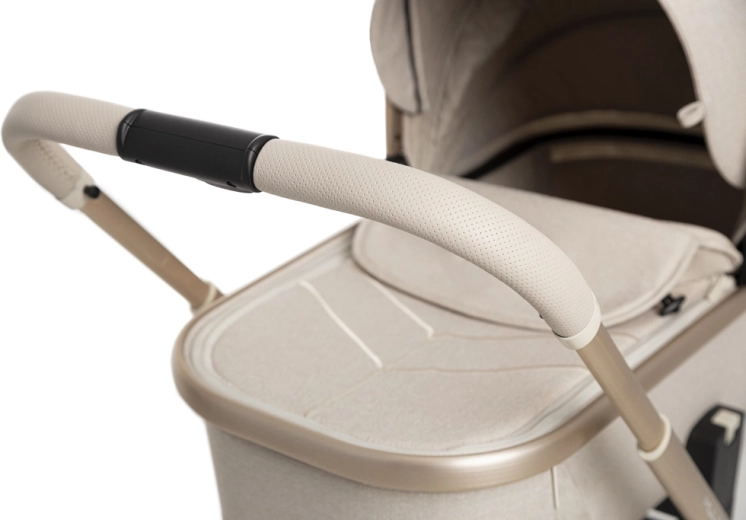 Rodiče ocení snadné intuitivní skládání i se sportovní sedačkou, teleskopickou rukojeť pro různé výšky, prostorný koš na zip a bohatou výbavu včetně pláštěnek, moskytiér, oboustranné vložky a stylové mamma tašky s přídavnou mini kabelkou. Sportovní sedák lze nasadit po i proti směru jízdy a korbu je možné umístit přímo na rám nebo na zvýšovací adaptéry pro pohodlnější manipulaci s novorozencem.