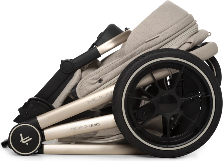 MUUVO QUICK BOHO je limitovaná edice bestselleru, která kombinuje jemnou béžovou s boho detaily v šampaň rámu. Set 2v1 zahrnuje hlubokou korbu a sportovní sezení, takže máte vše potřebné od prvních dnů miminka až po batole. Korba s funkcí paměťového tlačítka a systémem 3D Airflow zajišťuje panoramatické větrání ve třech zónách, integrovanou moskytiéru i prodloužitelnou stříšku se sluneční clonou.