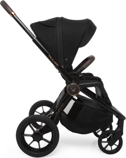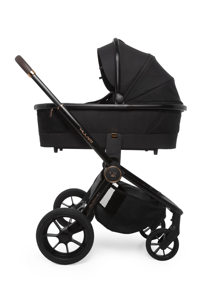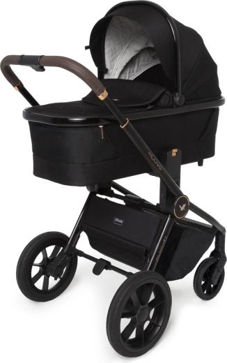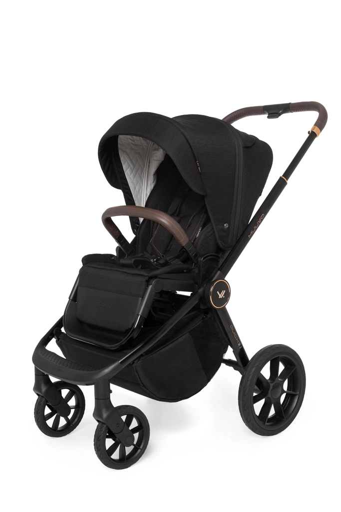 Hluboká korba s Memory Buttons a dvěma ventilačními okénky nabízí komfort pro novorozence, lze ji nasadit přímo na rám nebo na výškové adaptéry. Rodiče ocení teleskopickou rukojeť, velký uzavřený košík, snadné skládání i novou prostornou přebalovací tašku s možností zavěšení na rukojeť. Gelová, nepropíchnutelná kola s odpružením a aretací předních kol zvládnou město i lehčí terén.