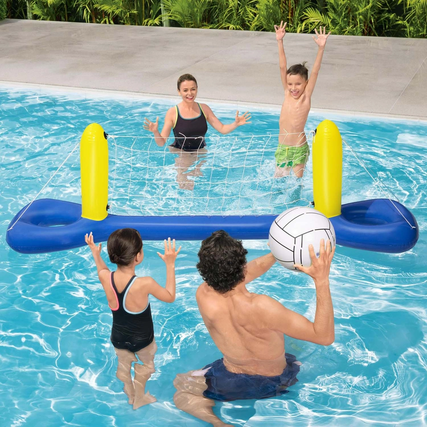 Tato nafukovací volejbalová síť do bazénu přináší do Vaší zahrady porci aktivní zábavy. Stabilní plovoucí základna s dvojicí sloupků a pevnou nylonovou sítí zajistí plynulou hru a odolnost proti stříkající vodě. Sada je ideální pro rodinné odpoledne i přátelské zápasy.