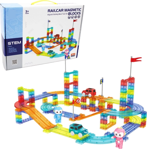 Postavte si vlastní závodní okruh a užijte si adrenalinové jízdy s dvěma elektrickými auty. Díly se díky magnetickým spojům rychle a pevně propojí, takže můžete neustále měnit design trati a zkoušet nové varianty.