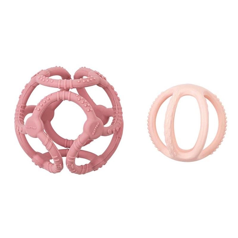Kombinace většího míče o průměru 10 cm a menšího 7 cm nabízí variabilní zábavu a rozvoj jemné motoriky. Bezpečný silikon bez BPA je odolný, hygienický a snadno se čistí mýdlem a vodou. Pro úsporu místa lze kuličky zasunout do sebe, takže kousátko snadno vezmete kamkoli s sebou.