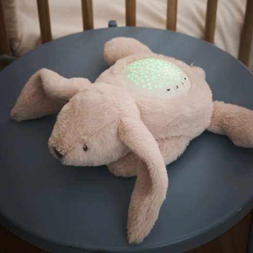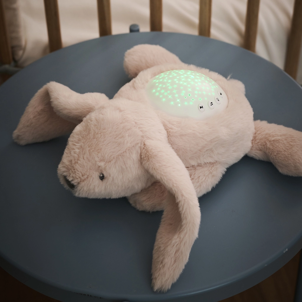 NATTou hudební projektor s nočním světlem v podobě měkoučkého béžového zajíčka je ideální společník pro večerní rituály. Zajistí jemnou projekci hvězdiček v několika barvách a doprovodí miminko k usínání ukolébavkami i bílým šumem. Bezpečná LED technologie se nezahřívá, takže je vhodná do dětských pokojů.