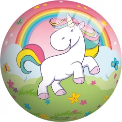 Veselý míč s potiskem jednorožců je ideální pro hru na zahradě, hřišti či v bazénu. Vyroben z voděodolného materiálu a snadno dofouknutelný.
