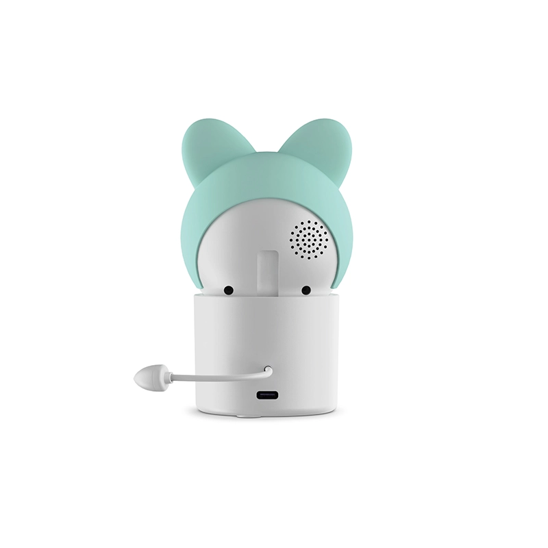 Snadná instalace s flexibilním držákem umožňuje umístění na stěnu, strop i postýlku. Minimalistický design se silikonovým krytem v podobě medvídka je bezpečný a přívětivý do dětského pokoje.