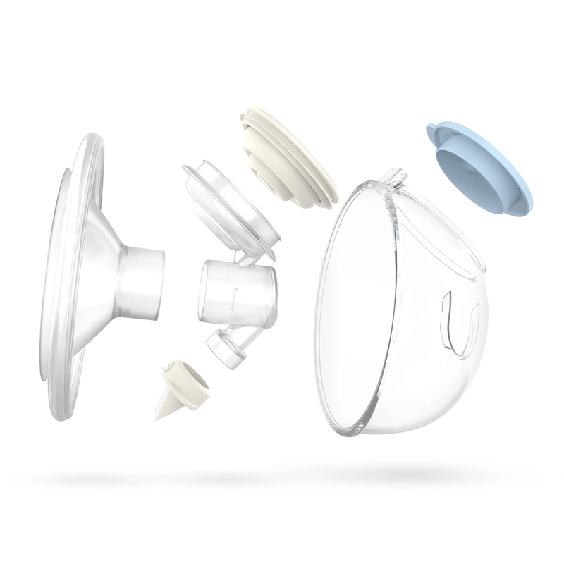 Měkké silikonové štíty ve dvou velikostech zajišťují dobré utěsnění, pohodlí a lepší přizpůsobení pro různé typy prsou.