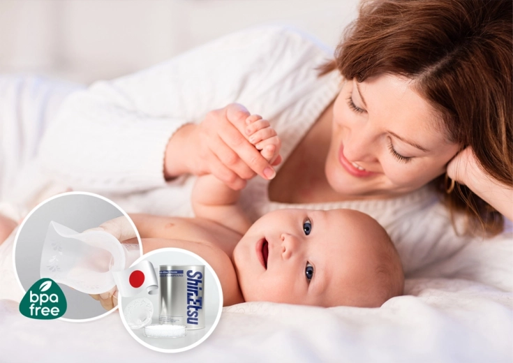 Měkké štíty z japonského silikonu pro vyšší komfort a antirefluxní konstrukce, která brání zpětnému toku mléka.