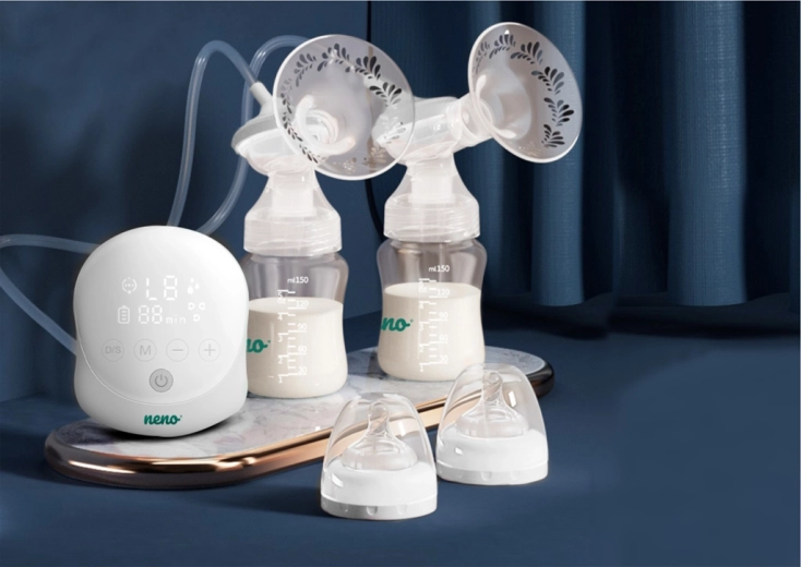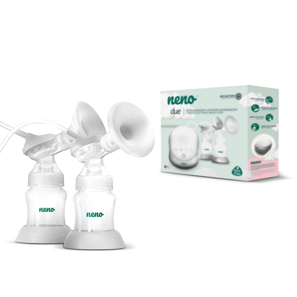 Neno Due je moderní elektrická odsávačka mateřského mléka navržená pro pohodlí, hygienu a efektivitu. Díky dvojitému systému umožňuje odsávat oba prsy současně, což výrazně šetří čas a podporuje plynulejší tvorbu mléka. Měkké prsní štíty z jemného japonského silikonu zajišťují šetrný kontakt s pokožkou a lepší utěsnění pro efektivnější odsávání.