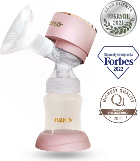 Měkká ergonomická silikonová vložka bez BPA je příjemná k pokožce a univerzálně padne na různé tvary a velikosti prsou. Rychlé nabíjení přes USB‑C, kompaktní rozměry a lehká konstrukce zajišťují pohodlné použití doma i na cestách. Součástí balení jsou také lahvičky z odolného materiálu PPSU a příslušenství pro praktické skladování mléka.