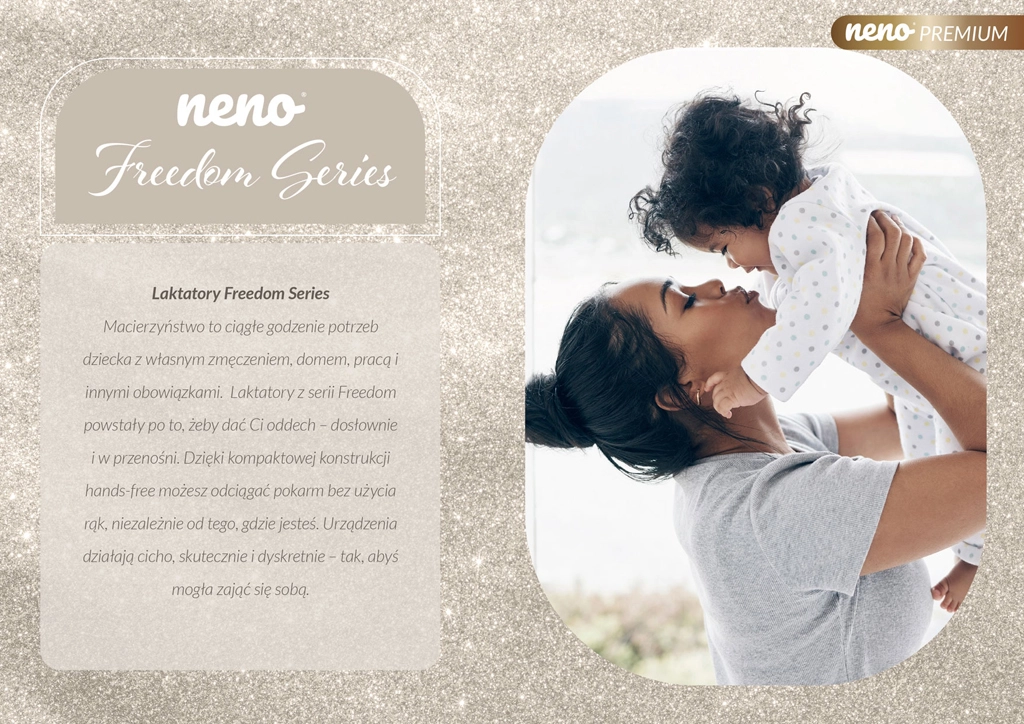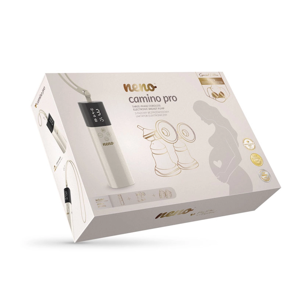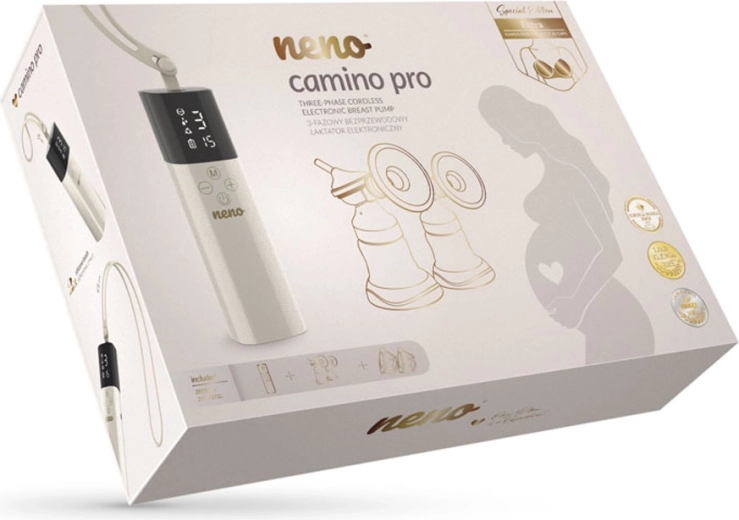 Neno Camino Pro ze série Freedom kombinuje výkon dvojité elektrické odsávačky s lehkým bezdrátovým tělem a ergonomickými, měkkými štíty. Třífázový režim napodobuje sání miminka – od jemné stimulace přes hluboké odsávání až po kombinaci obou – pro vyšší výtěžnost a podporu laktace. Integrovaný časovač, přehledný displej a dotykové ovládání umožní mít vše pod kontrolou jednou rukou.