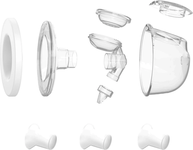 Součástí balení je kompletní sada pro lahvové odsávání i hands‑free sběr do diskrétních 240ml nádob, které se vejdou do standardní kojicí podprsenky. Uzavřený systém chrání mléko před zpětným tokem a kontaminací. Díky široké škále redukcí prsních štítů (až 7 velikostí) snadno najdete perfektní přilnutí bez tlaku a nepohodlí.