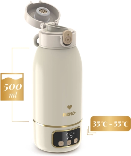 Cestujte bez starostí s přenosným ohřívačem Neno Savia, který rychle a ohřívá mléko či vodu, udrží stálou teplotu 35–55 °C a na jedno nabití zvládne až 8 ohřevů. Díky kompaktním rozměrům, bezdrátovému provozu, nepropustnému uzávěru a kapacitě 500 ml je ideální na výlety, do kočárku i na palubu letadla.