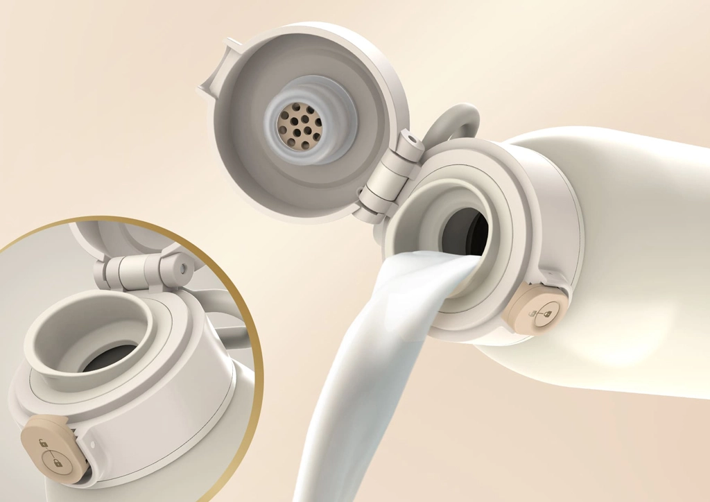 Těsnící uzávěr se zámkem brání rozlití v tašce a tvarovaný otvor zajišťuje čisté a přesné nalévání bez kapek.