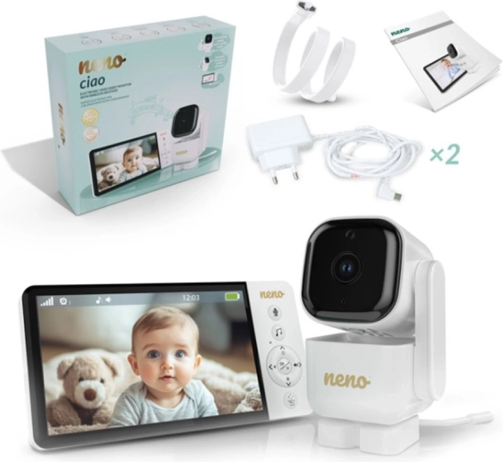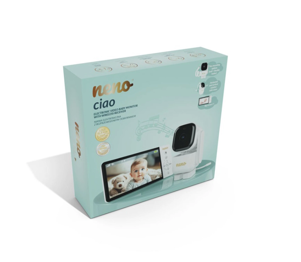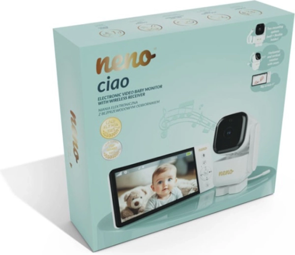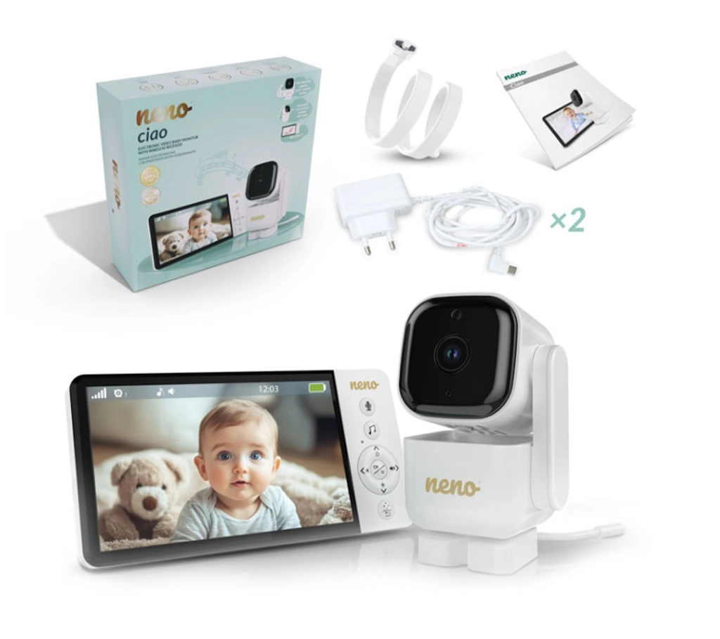 Chytrá videochůvička Neno Ciao vám zajistí klid díky 5" barevnému displeji, otočné kameře Pan & Tilt (355°/90°), nočnímu vidění, obousměrné komunikaci a technologii VOX pro úsporu energie. Vysílač má dosah až 300 m, snímač teploty, 8 uklidňujících ukolébavek a výdrž přijímače až 12 hodin na vestavěnou baterii 5000 mAh.
