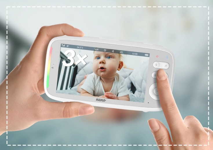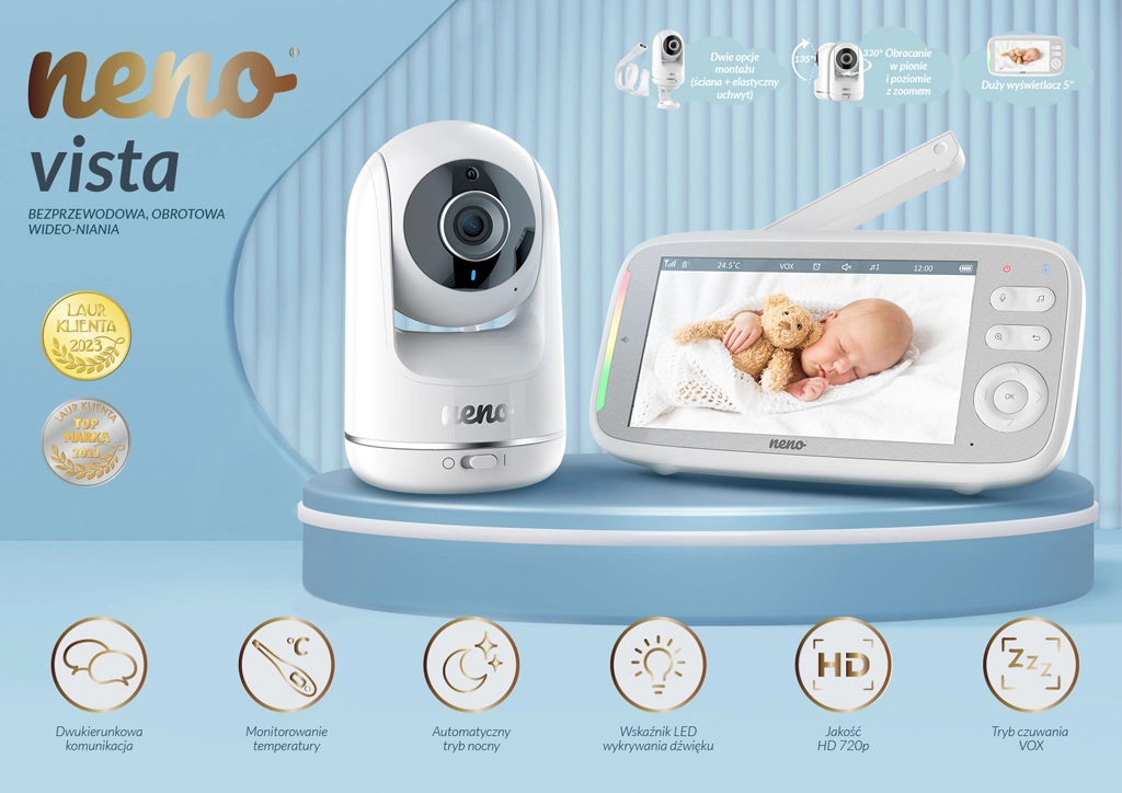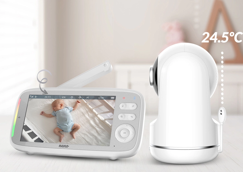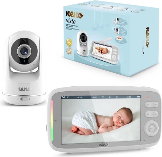 Neno Vista je spolehlivá digitální videochůvička navržená pro bezpečné a pohodlné hlídání dětí. Široký 5" LCD displej zobrazuje čistý obraz v HD 720p kvalitě a automatický noční režim s IR LED zajistí jasné detaily i ve tmě. Díky obousměrné komunikaci můžete miminko uklidnit na dálku a s VOX režimem se displej rozsvítí jen při zaznamenaném zvuku – šetří tak baterii a prodlužuje výdrž.