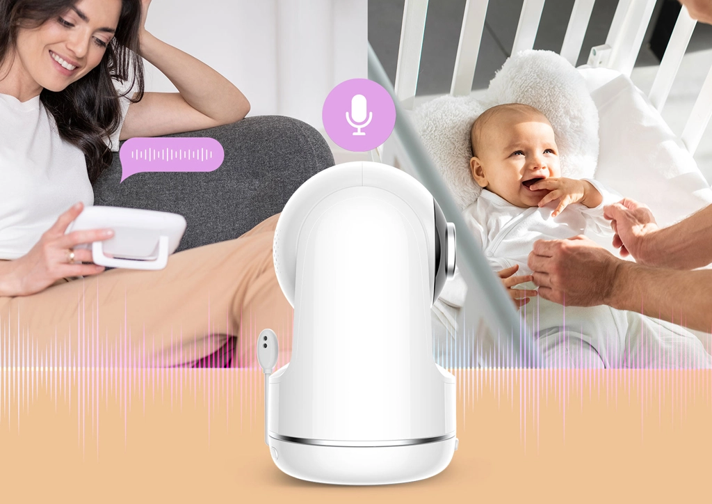 Horizontální a vertikální náklon se zoomem, vizuální LED ukazatel úrovně hluku a talk-back funkce vám dávají úplnou kontrolu a možnost dítě uklidnit na dálku.
