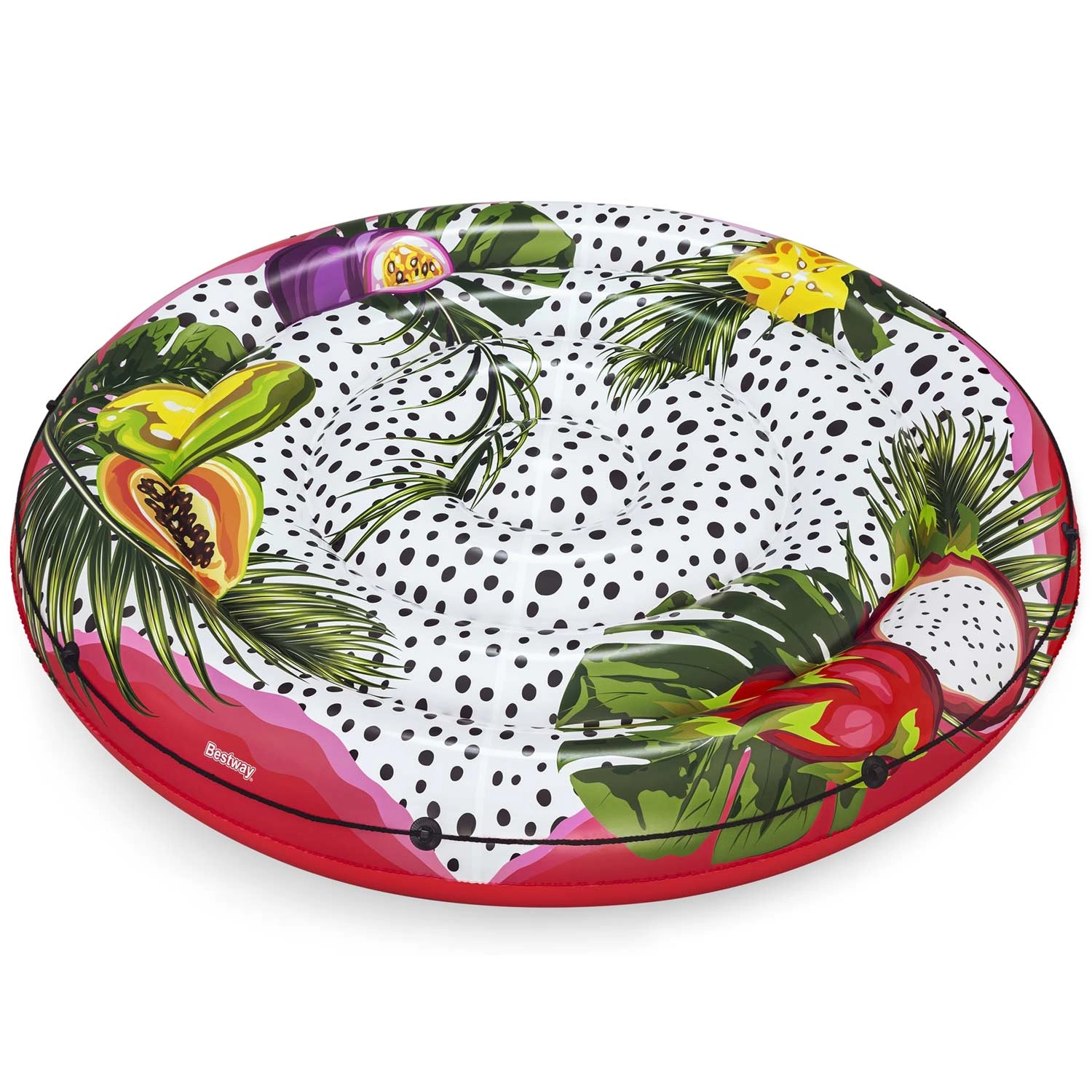 Objevte pohodlí a zábavu na vodě s plovoucí ostrovní matrací BESTWAY v XXL velikosti. Díky prostorné kruhové ploše si vychutnáte relax ve dvou, ať už v bazénu, jezeře nebo u moře. Tropický potisk s ovocem a listy dodá vašemu letnímu outfitu šmrnc a přitáhne pozornost všude, kde se objevíte.