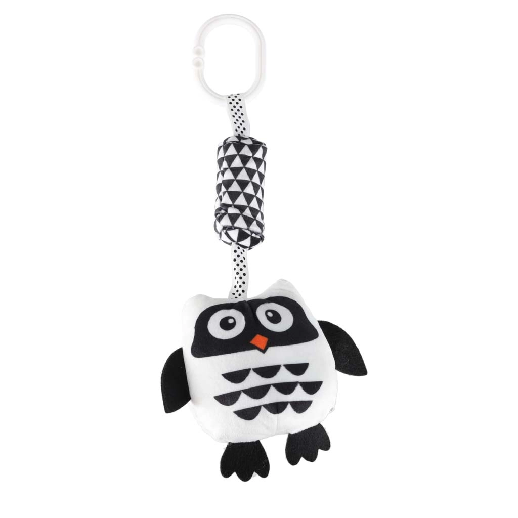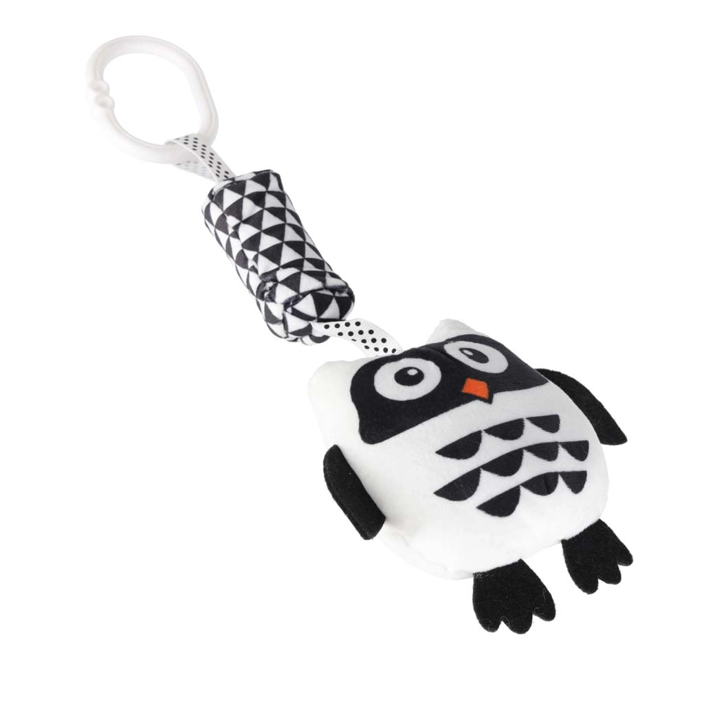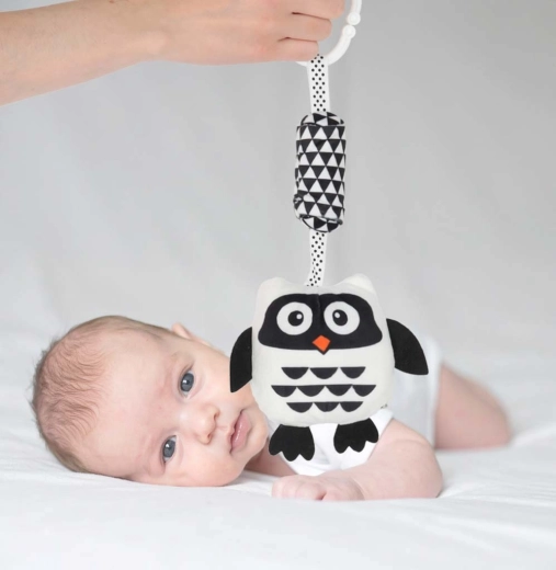 Tato kontrastní závěsná hračka ve tvaru sovy je navržená s ohledem na potřeby novorozenců. Vysoký kontrast černé a bílé barvy přitahuje dětské oči a podporuje raný rozvoj zraku. Měkké, na dotek příjemné materiály a bezpečné zpracování zaručují pohodlné a bezpečné objevování.
