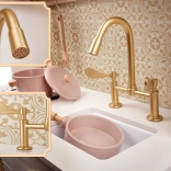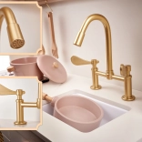 Elegantní dřez a zlatý kohoutek