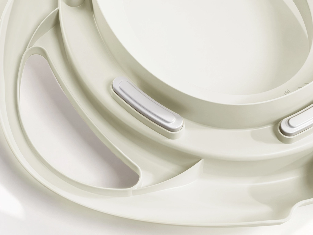 Spodní část je opatřena protiskluzovými krytkami, které zabraňují pohybu na toaletním prkénku. Hladké povrchy a vyjímatelná vložka zajišťují rychlou a snadnou údržbu. Redukce je lehká, odolná a vhodná pro většinu standardních WC sedátek.