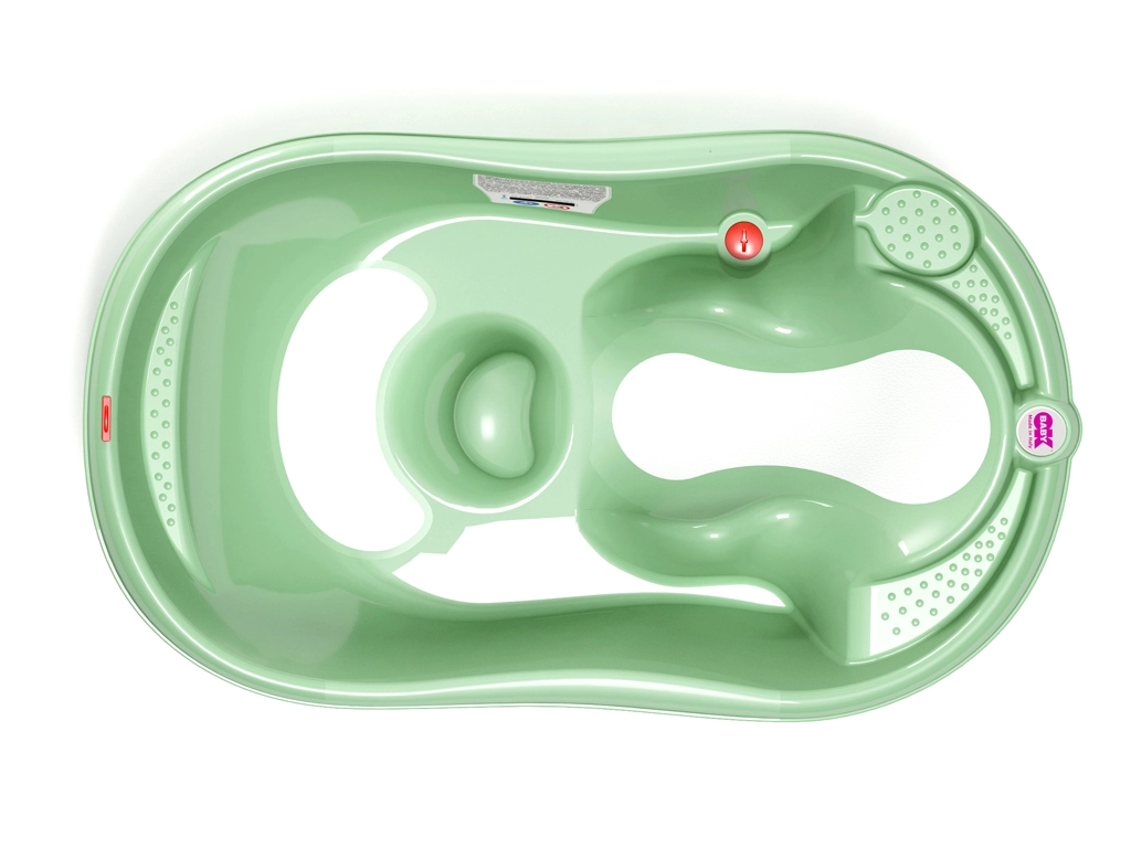 Vanička OK BABY Onda Evolution je navržena pro bezpečné a komfortní koupání od prvních dnů. Ergonomické tvarování s integrovanou opěrkou přirozeně podpírá tělo miminka, protiskluzové plochy zvyšují stabilitu a termoindikátor pomáhá udržet ideální teplotu vody 35–38 °C.