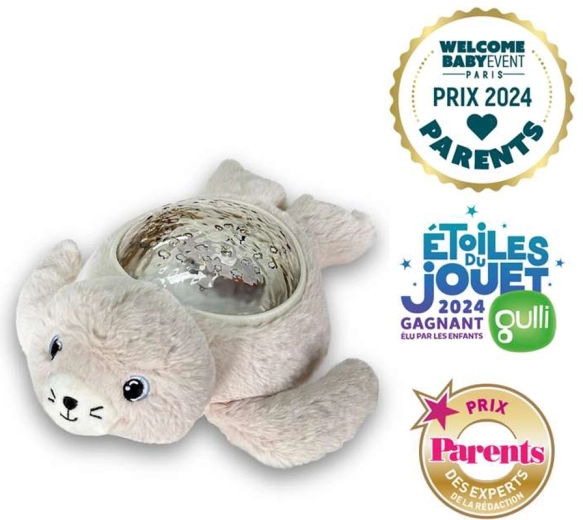 Udělejte z večerního usínání příjemný rituál s projektorem Pabobo Aqua Dream ve tvaru tuleně. Vytváří uklidňující podvodní projekce s pohybujícími se rybkami a světelnými vlnami, doplněné o jemnou hudbu či bílý šum. Nabízí 3 úrovně jasu, nastavitelnou hlasitost, volbu ukolébavky, mořské melodie nebo bílého šumu a automatické vypnutí pro bezpečný a klidný spánek.