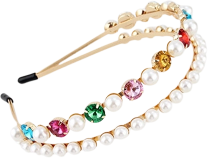 Tato stylová dvojitá čelenka je navržena tak, aby na hlavě pevně držela a zároveň zůstala pohodlná po celý den. Kombinace třpytivých drahokamů a jemných perel vytváří elegantní a okouzlující vzhled, který se hodí k šatům i ležérním outfitům.