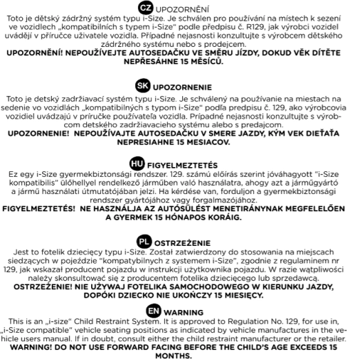 - Bezpečnost i-Size (ECE R129) – ověřené boční i čelní nárazy.