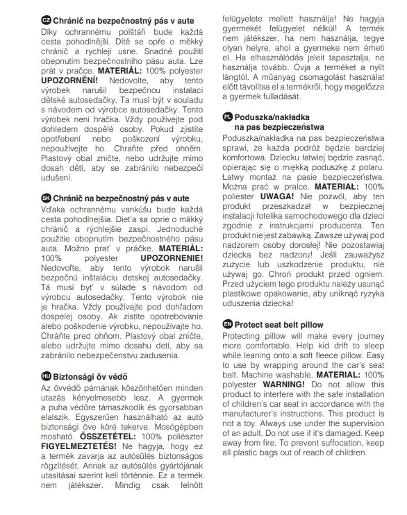 Instalace je otázkou okamžiku – chránič jednoduše omotáte kolem pásu a zajistíte. Díky kompaktním rozměrům skvěle sedí na většinu automobilových pásů a lze jej bez potíží prát v pračce na 30 °C.