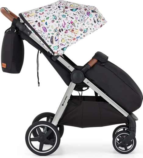 Rodiče ocení jednoduché skládání jednou rukou dovnitř (potah zůstává čistý), otočné a odnímatelné madlo, magnetickou přezku a výškově nastavitelnou rukojeť. Dítě tiší spánek díky dlouhé opěrce zad, nastavení do téměř úplného lehu a extra dlouhé stříšce se SPF 50 a tichým magnetickým okénkem. Velký koš, přebalovací taška a nánožník tvoří praktickou výbavu na každý den.