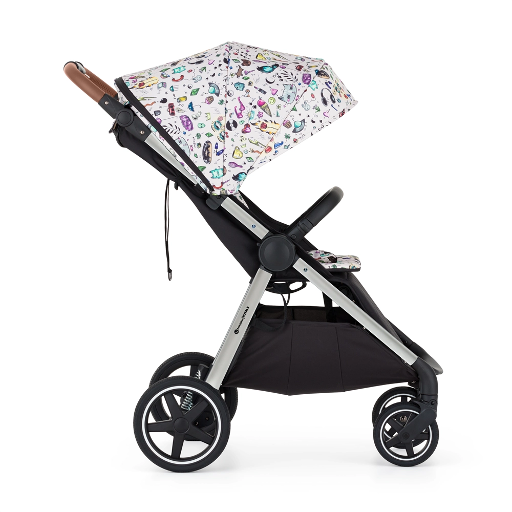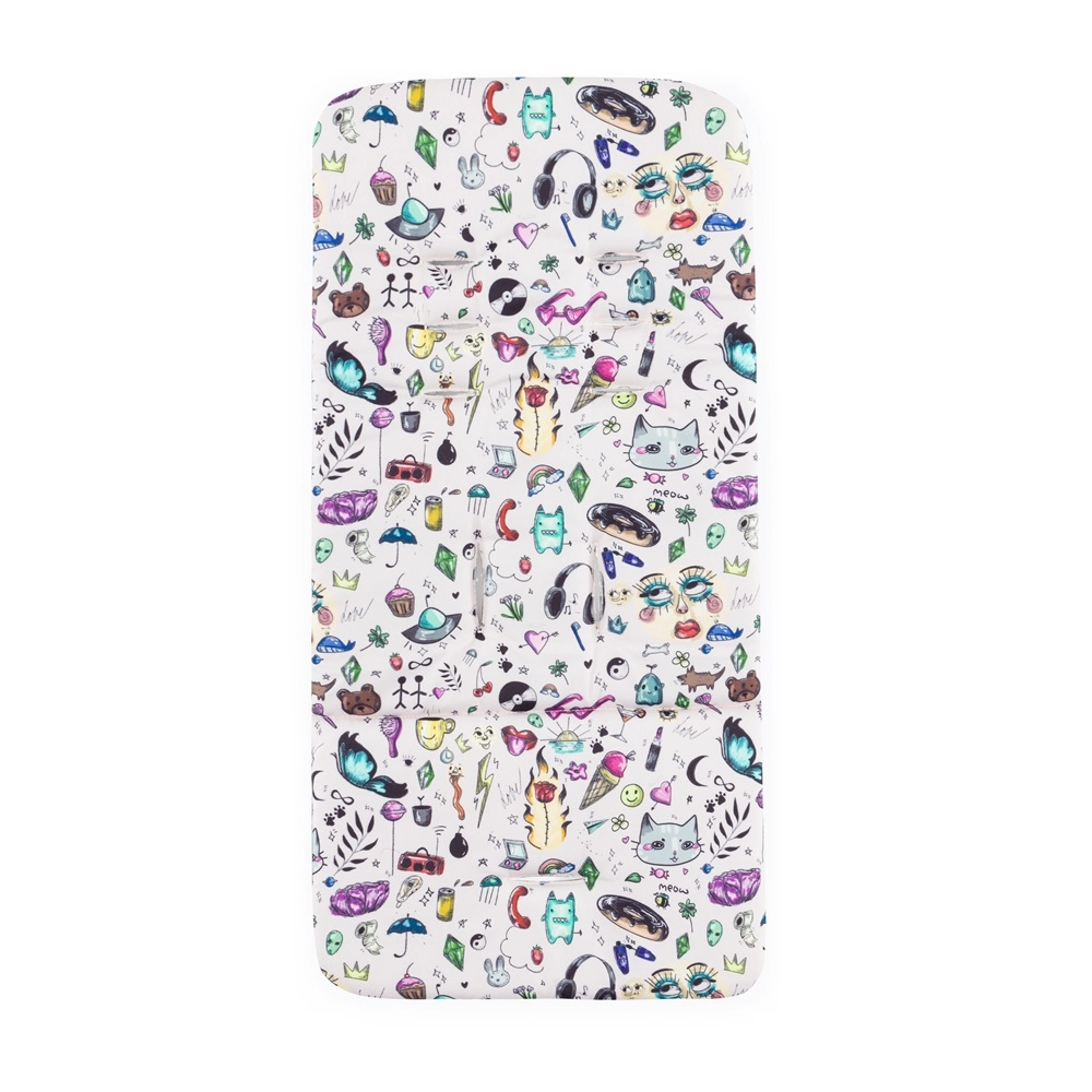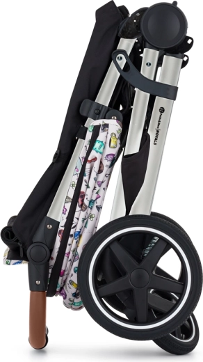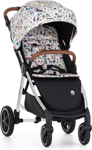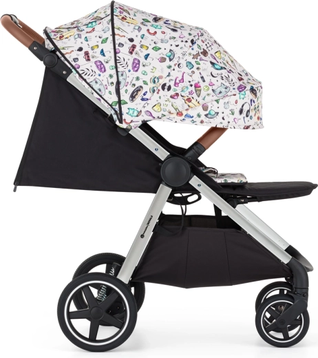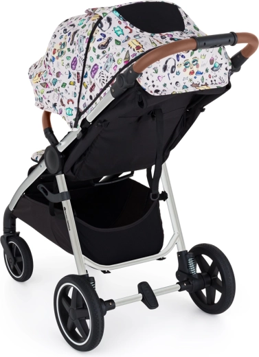 konstrukce, přední a zadní celogumová kola, potah sedadla, přebalovací taška, černý nánožník, stříška, vložka do kočárku ve vzoru Tattoo, 3dílné polstrování