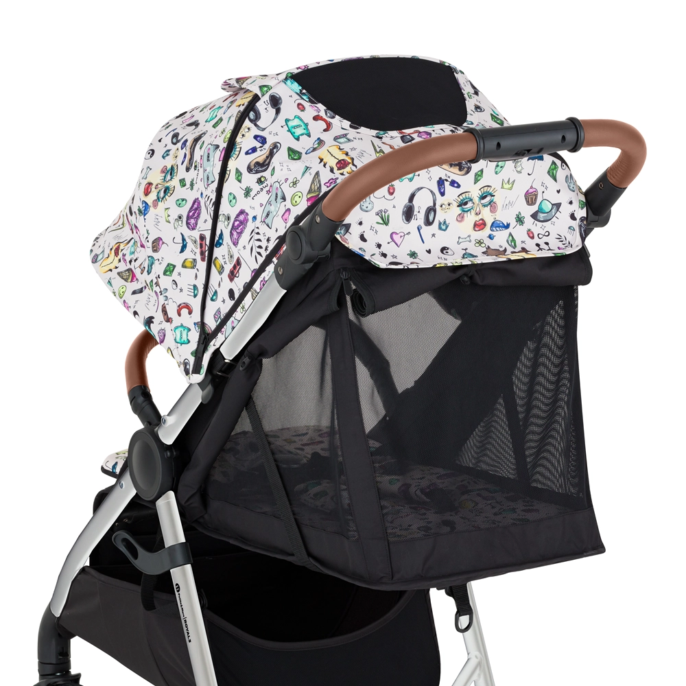 Limitovaná kolekce Limited 100 přináší do měst i přírody svěží design od mladých tvůrců. Royal 3 ve verzi Silver Tattoo zaujme pevnou hliníkovou konstrukcí v elegantním provedení, hnědými detaily z eko‑kůže a praktickými celogumovými koly se stylovým bílým lemem. Díky systému Panoramic Ventilation je kočárek odvětrávaný ze tří stran, takže dítěti dopřeje příjemné klima i v horku.