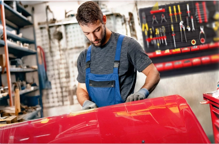 - Maximální přehlednost: vše na očích, rychlý přístup k nářadí i drobnému spojovacímu materiálu.