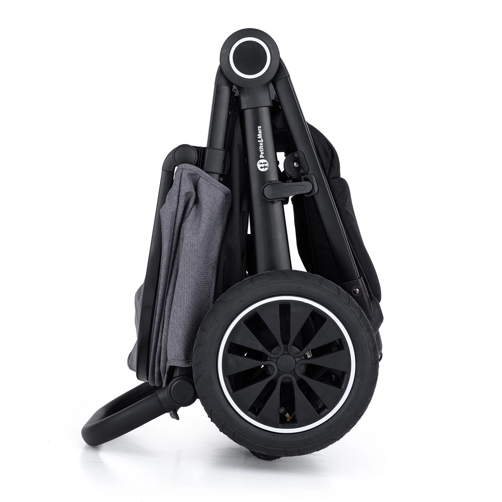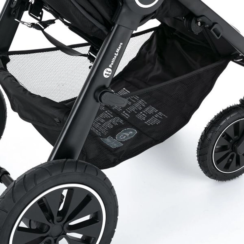 PETITE&MARS Street+ Air Black Limited je promyšlený kočárek pro děti od 6 měsíců do 22 kg, navržený pro komfort dítěte i rodičů. Lehká, ale pevná konstrukce pohlcuje nárazy a nafukovací kola zvyšují stabilitu a průjezdnost v městě i v terénu. Extra velká stříška s okénkem a SPF 50 chrání před sluncem i větrem, zatímco dlouhá spací část a velká opěrka zad zajistí pohodlí na každé cestě.