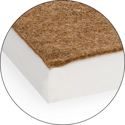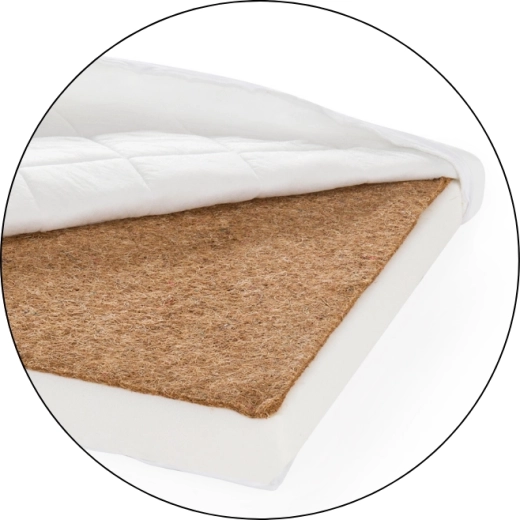 Vrstva z kokosového vlákna je vysoce prodyšná, skvěle odvádí vlhkost a přirozeně omezuje množení roztočů. Poskytuje pevnější oporu pro zdravý vývoj páteře novorozenců.
