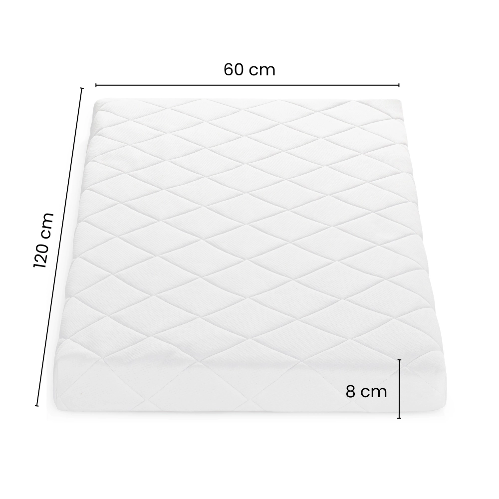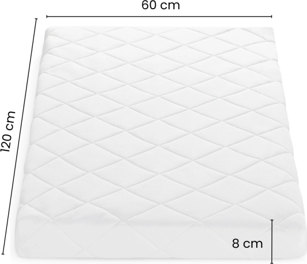 Díky oboustranné konstrukci nabídne vhodnou tuhost v každé fázi vývoje: tvrdší kokosová strana je ideální pro novorozence, zatímco měkčí pěnová strana potěší batolata. Výška 8 cm je kompatibilní s většinou monitorů dechu a zajišťuje optimální funkci i cirkulaci vzduchu v postýlce.