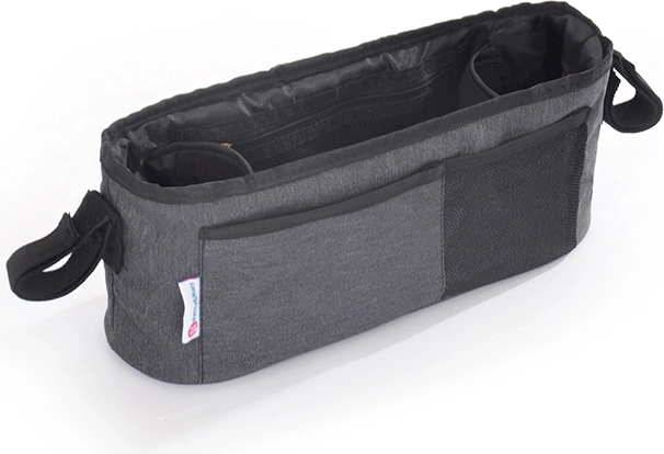 Praktický organizér na kočárek s nastavitelnými popruhy a suchými zipy udrží všechny nezbytnosti přehledně po ruce. Nabízí prostorný interiér se dvěma držáky nápojů, velkou středovou přihrádkou a dvěma předními kapsami. Díky univerzálnímu uchycení je vhodný pro většinu kočárků a má maximální nosnost 2 kg.