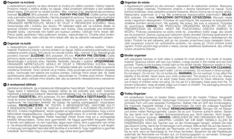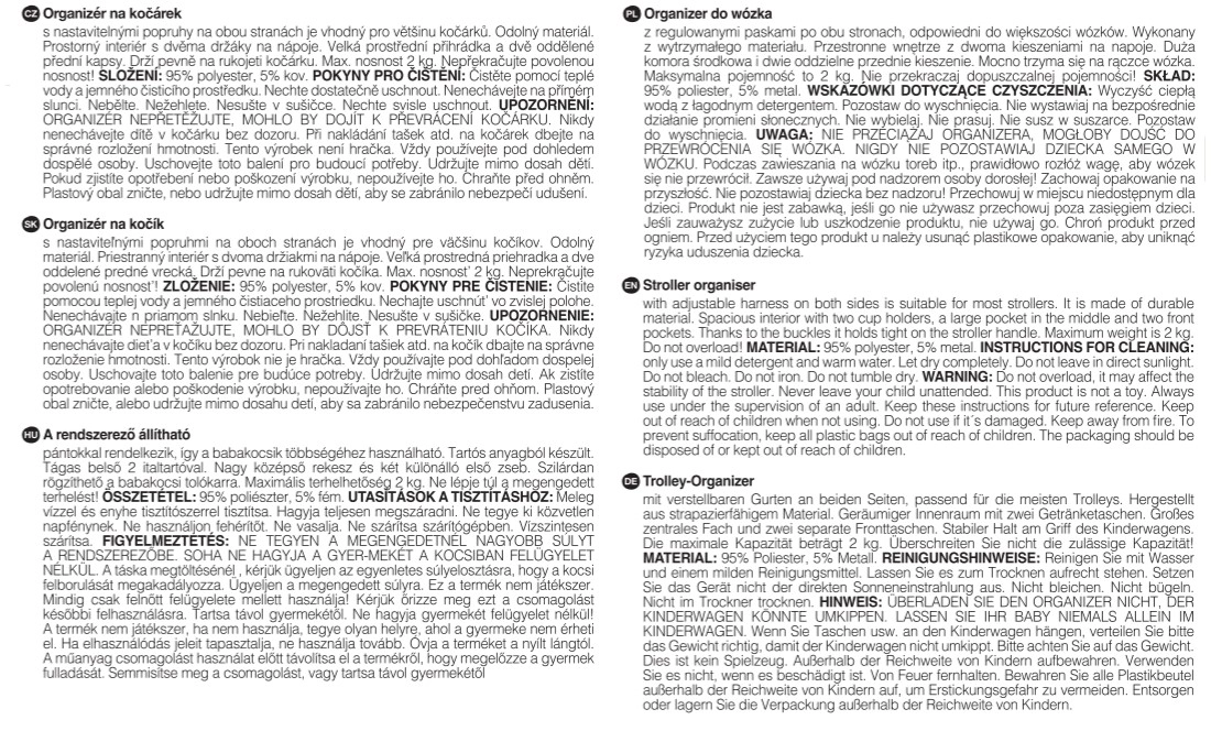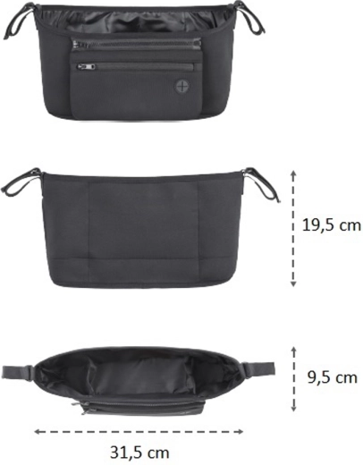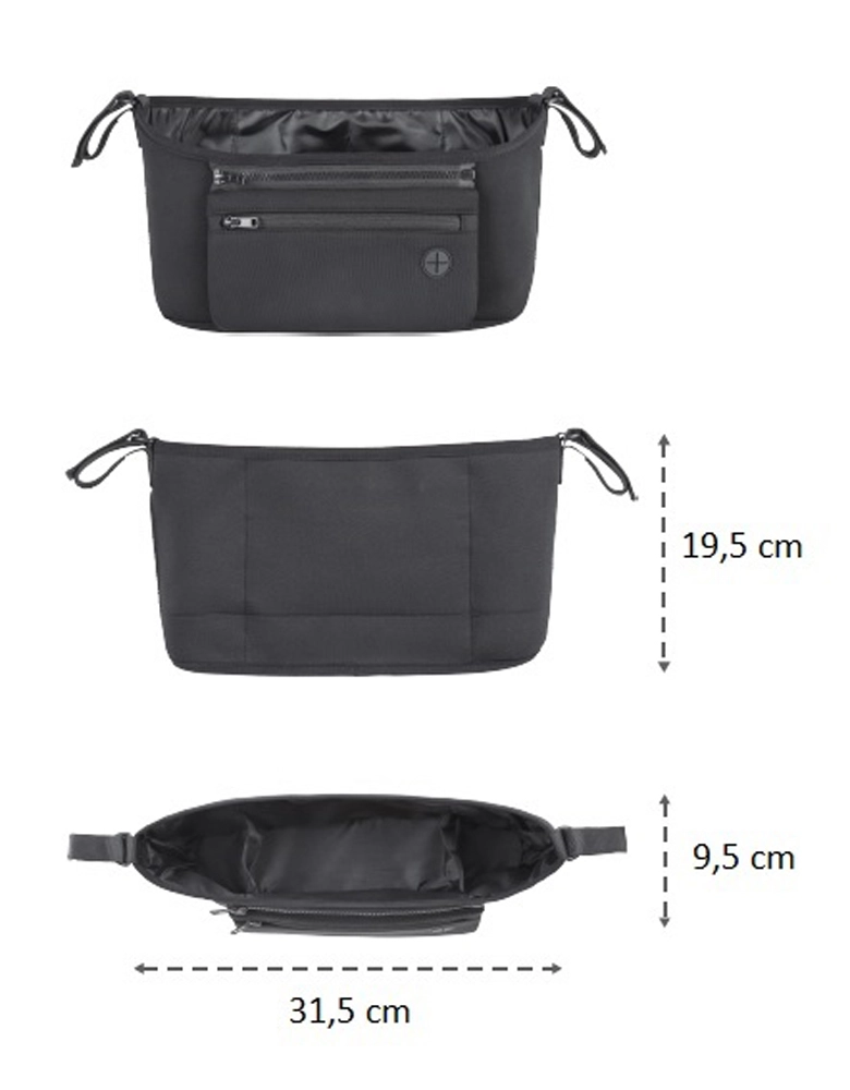 Montáž je rychlá a spolehlivá – popruhy se suchým zipem zajistí pevné uchycení na jakýkoli typ kočárku. S maximální nosností 2 kg je organizér navržen tak, aby zůstal stabilní a nepřekážel při jízdě. Elegantní černý design se hodí ke každému kočárku a udrží vaše věci přehledně uspořádané bez nutnosti nosit další kabelku.